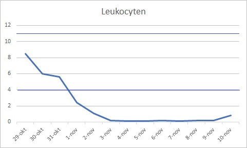 Is de beker dan nu leeg? Nog steeds niet helemaal. Vanmorgen vroeg bleek ze koorts te hebben. Daar werd bij ZGV al scherp op gelet, want dat komt heel vaak voor bij deze behandeling. Daarom werd ook snel actie ondernomen (extra antibiotica) en naar het lijkt succesvol: vanmiddag was de koorts al weer verdwenen. Het zou mooi zijn als dit met een sisser afloopt.