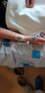 Roelof heeft jullie al laten weten dat de stijgende lijn zaterdag is ingezet. Zondag waren de bloedwaarden weer iets gestegen en maandag liet opnieuw een stijging zien. Deze uitslagen pasten helemaal bij mijn gevoel; iedere dag voel ik me ietsje beter. Heel langzaam ben ik ook weer gestart met eten. Omdat ik nog steeds 100% voeding via de centrale lijn (cl) kreeg, had ik rustig de tijd om dat weer op te bouwen. Alle medicatie kreeg ik ook via de cl, tijd genoeg om langzaam weer aan pillen te wennen. Dacht ik.